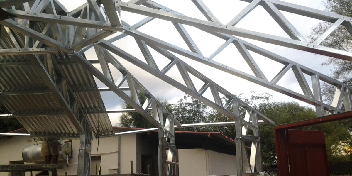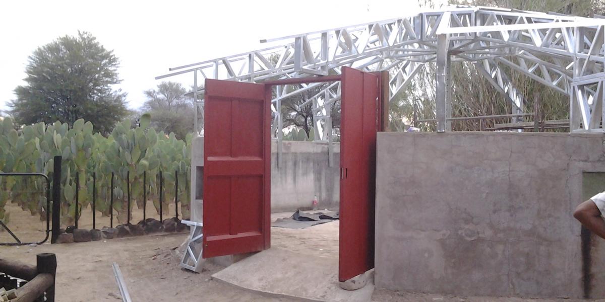 WV-Construction designed and fabricated a complex roof design for a dam conversion near Okahandja.